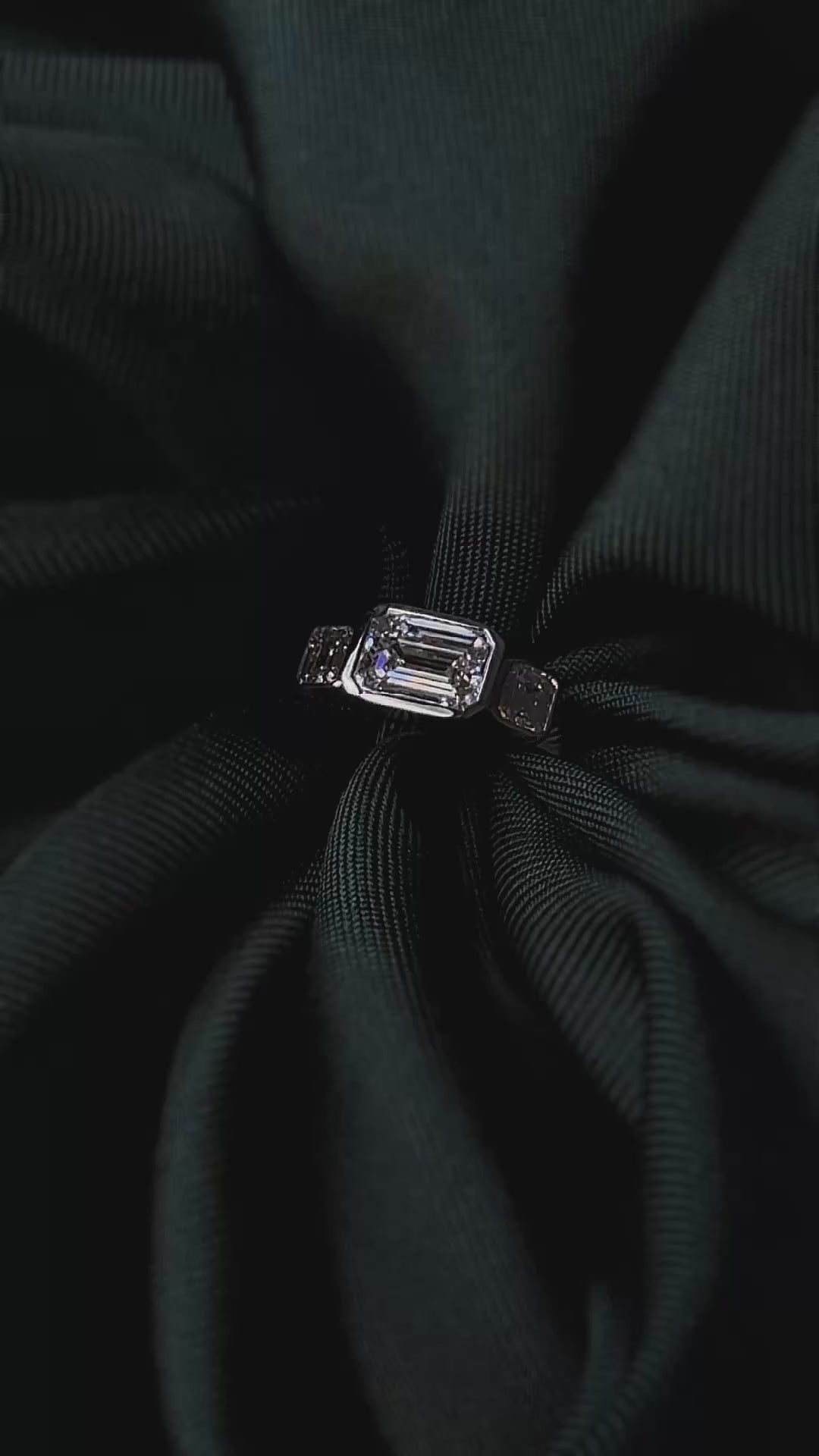 In the realm of timeless romance, the HERR Diamond Trilogy Ring stands as a beacon of enduring love and shared destiny. Featuring an east-west emerald-cut centre stone, flanked by two complementary emerald-cut diamonds. Cradled in a bezel setting that accentuates their brilliance, the trilogy symbolizes the cherished past, vibrant present, and boundless future of a couple's journey together.