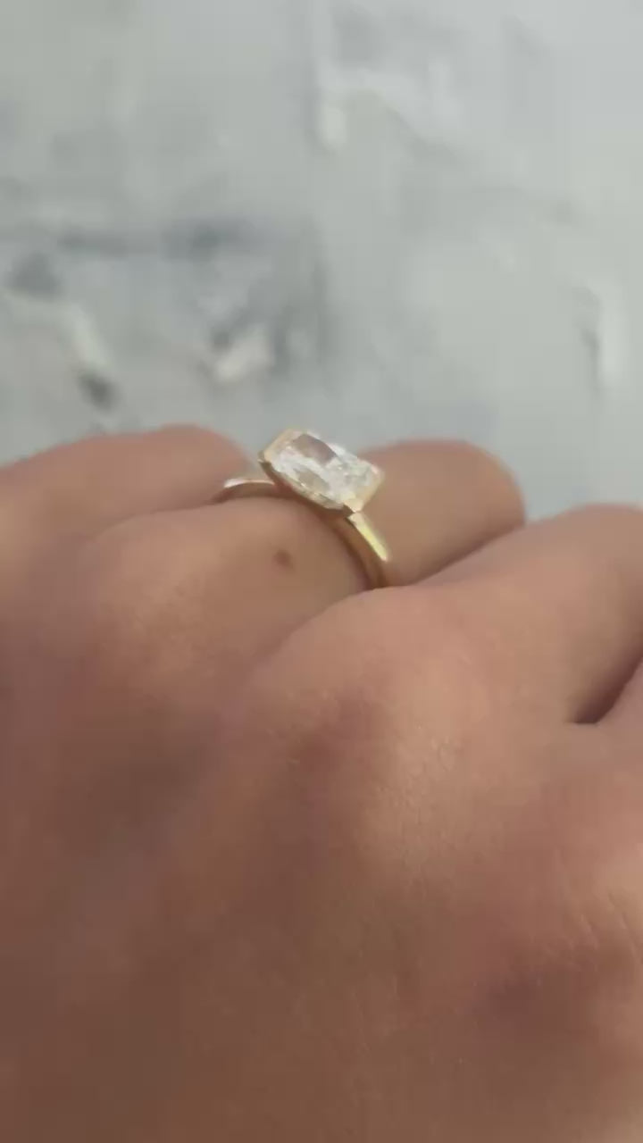 Contemporary and structured. The Vivian is a ring that makes a statement. With the half bezel setting around the brilliant radiant or emerald-cut diamond and thick band, this ring is designed for the modern woman. Shown paired with the Penelope Luxe Diamond Band.