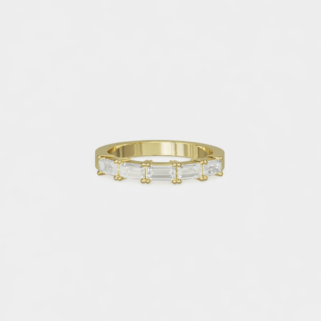Mimicking the rawness of nature, The Bamboo Diamond Band is ideal for both tying the knot and living every day in pure style. Featuring baguette diamonds, brilliant in shine and rustic essence.