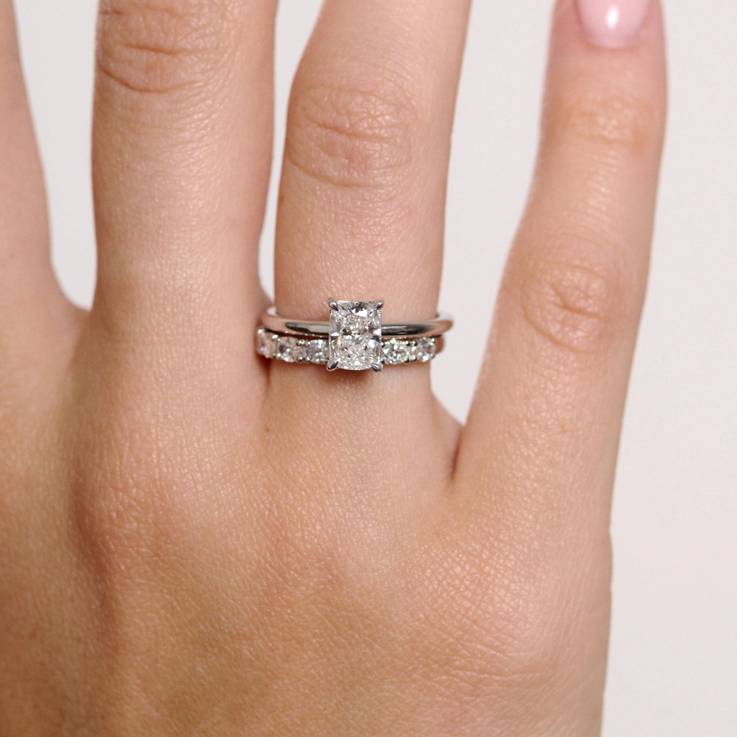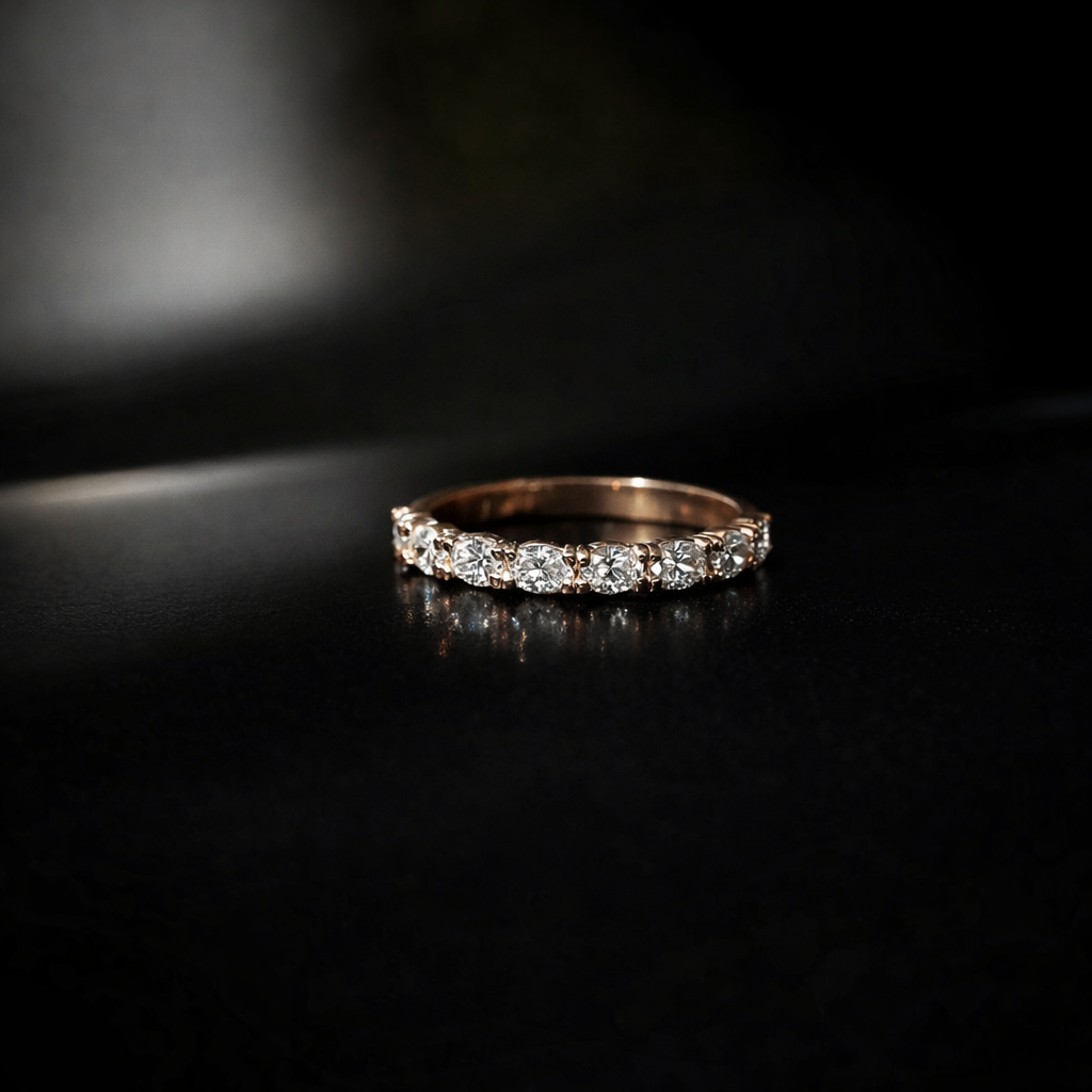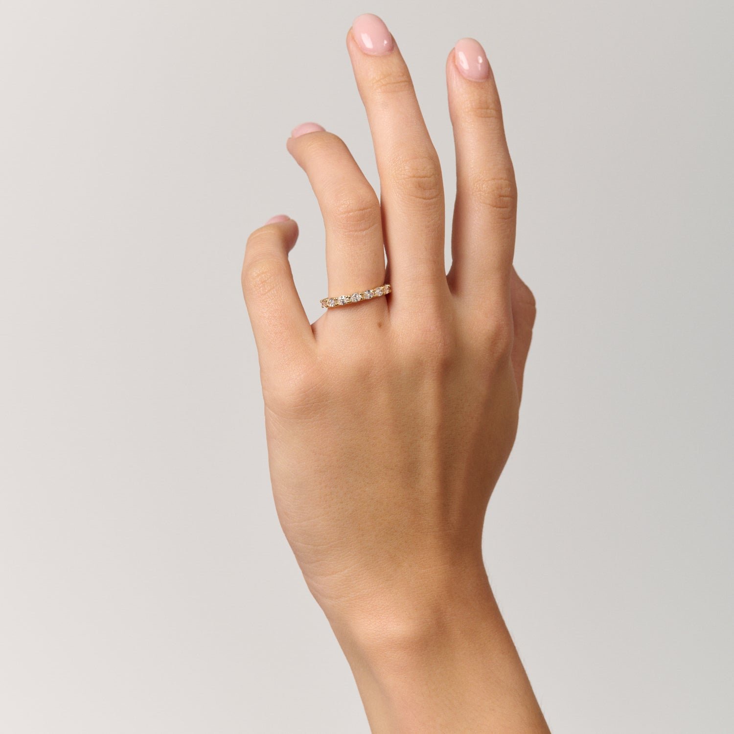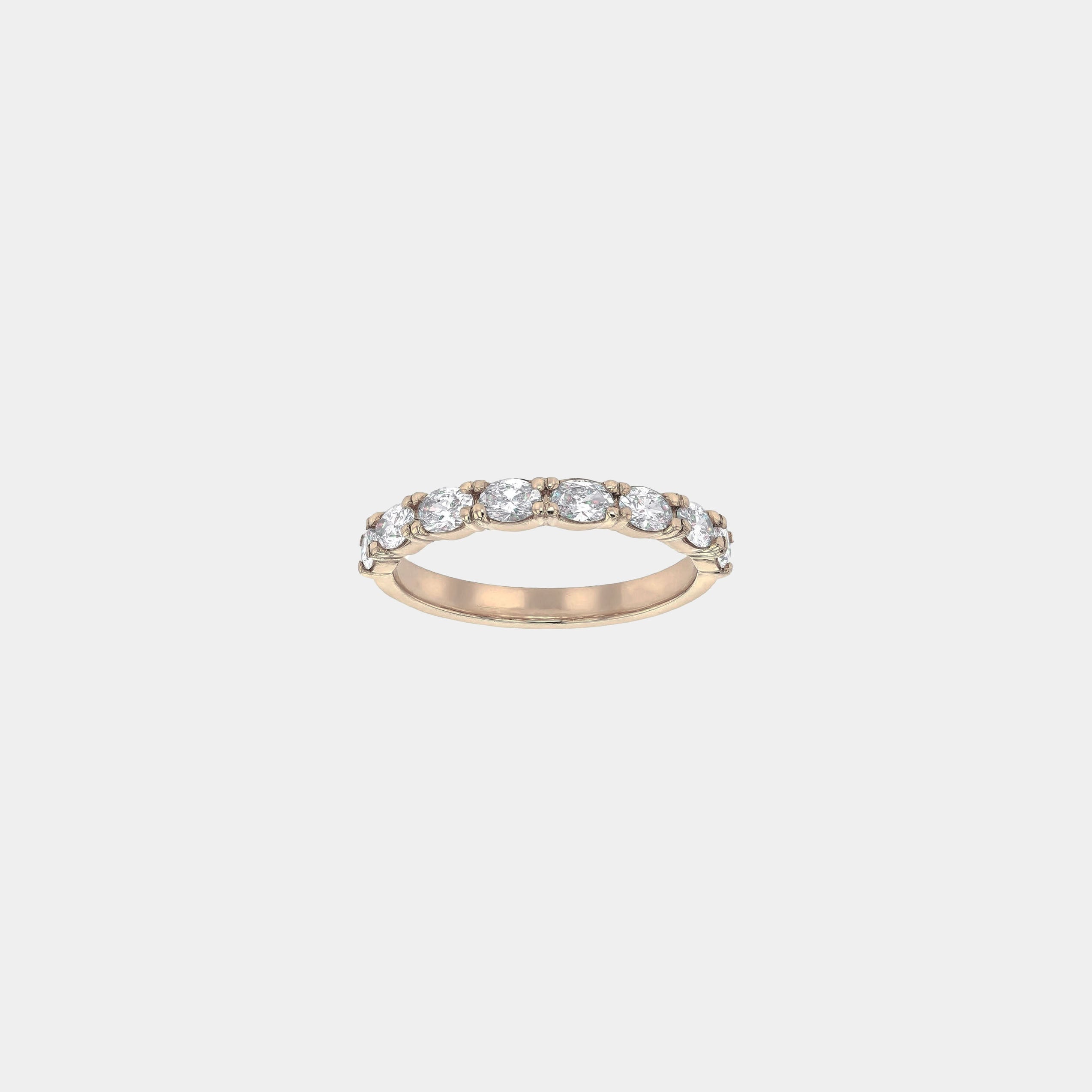 Sleek and structured, this ring offers a modern take on the classic oval half eternity band. Designed to sit flush against any of our engagement rings, it makes a striking choice for marking a meaningful moment.