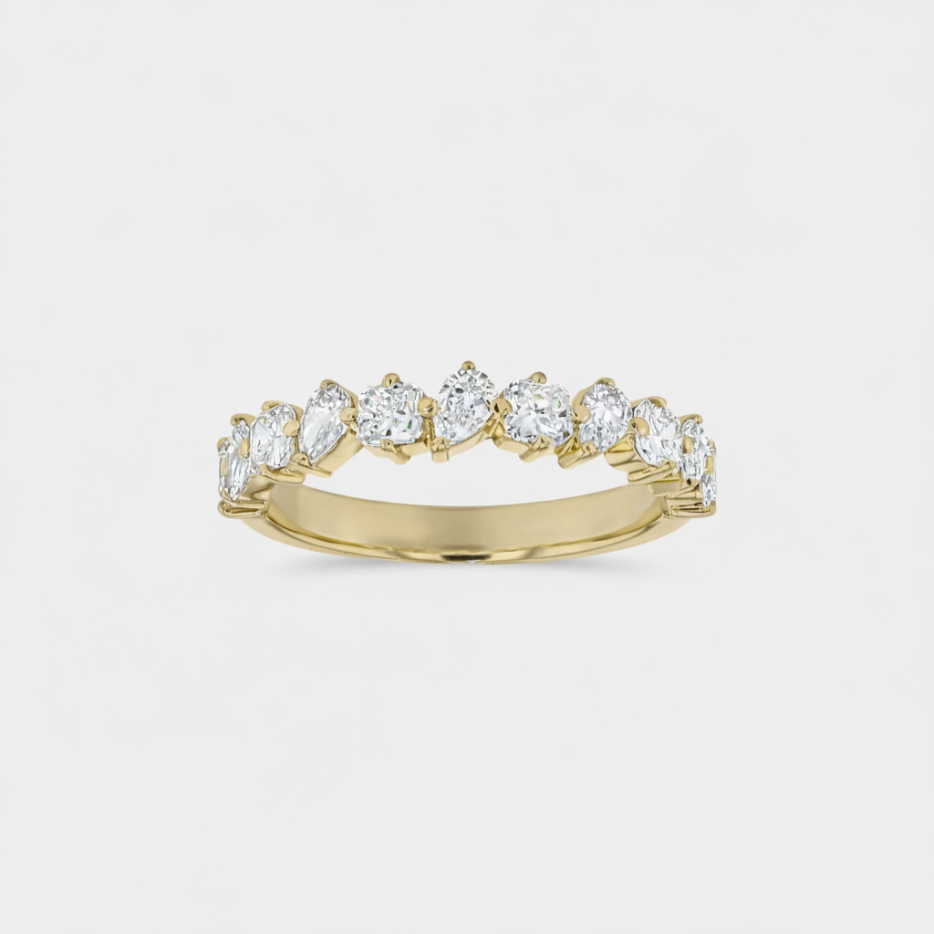 A diamond band like no other. Our Angelica band focuses on the stunning combination of the square radiant and pair cut diamonds. These contrasting shapes come together to create an arrangement that is unique and breath taking. One of the pieces in our Angelica Collection, the collection includes the Angelica Luxe, Angelica Earrings, Angelica Bracelet & Angelica Necklace.
